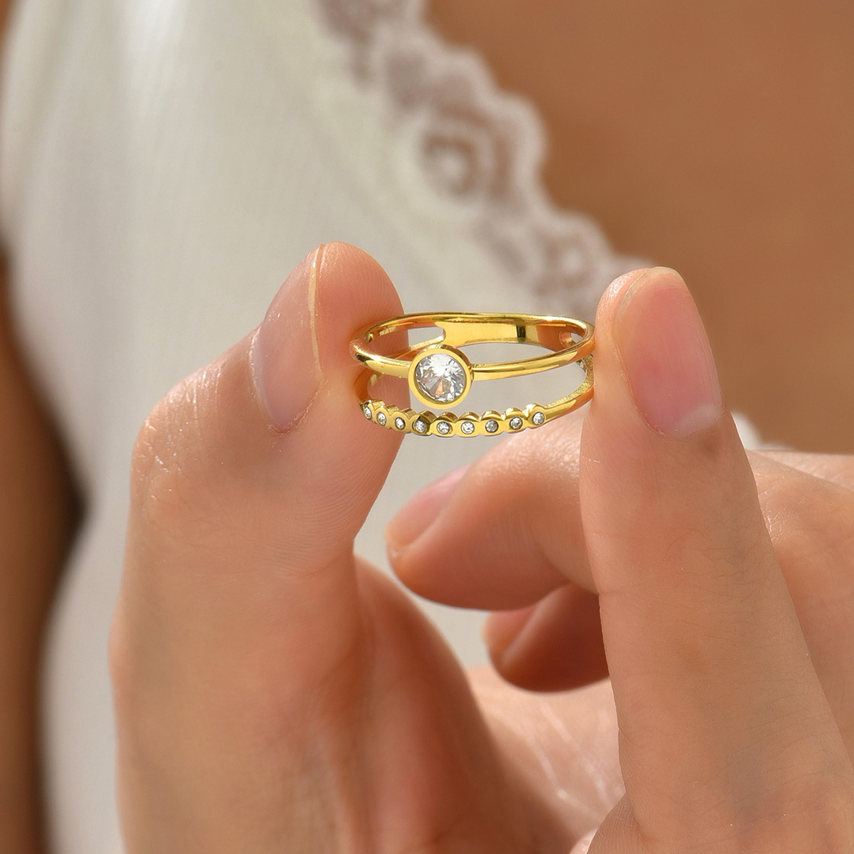 Design: Dual Band Open Ring with Bezel-Set Zircon